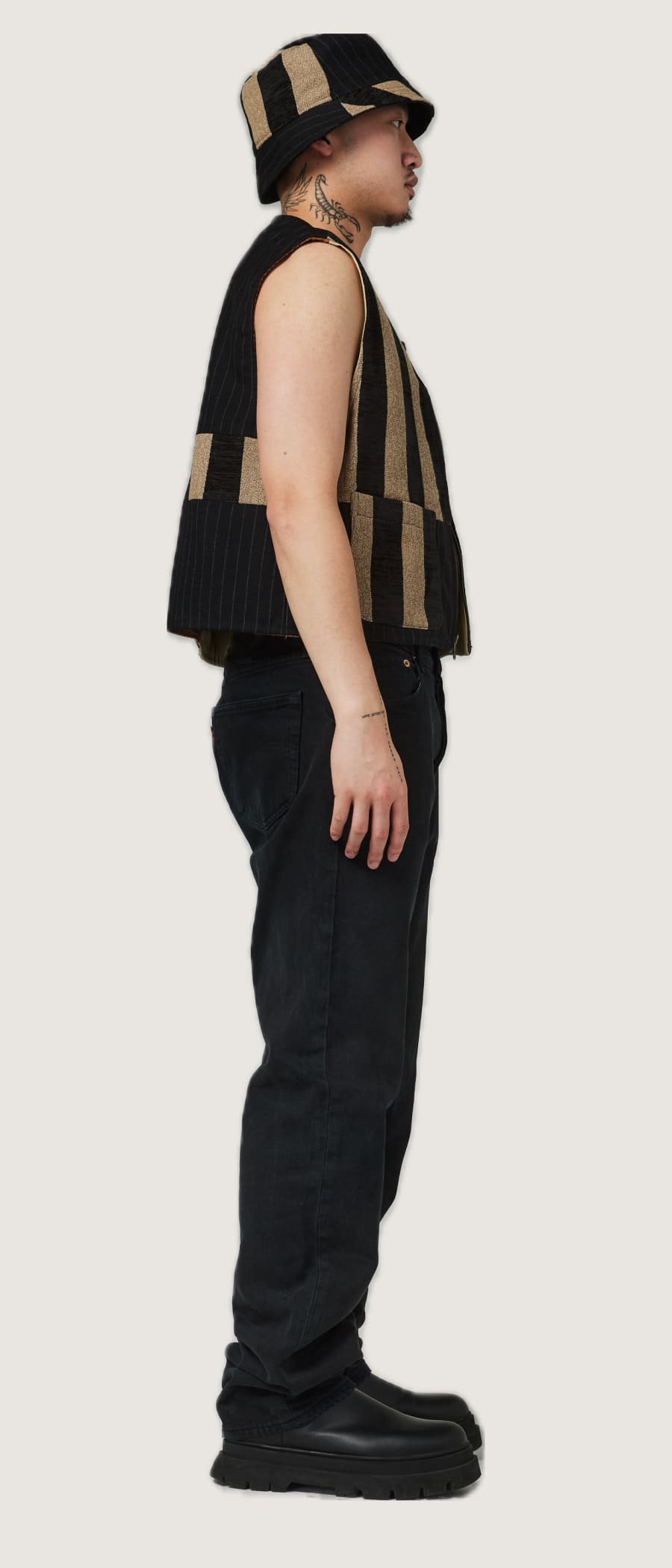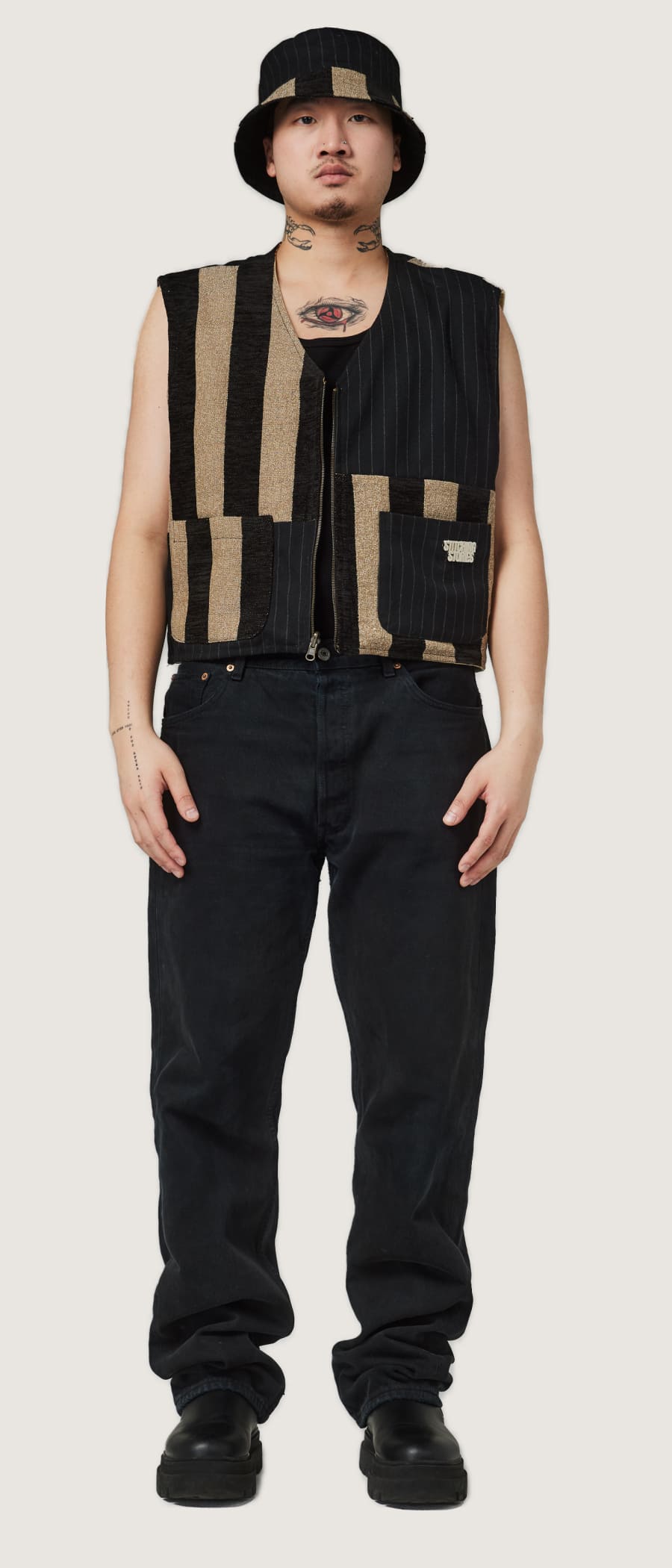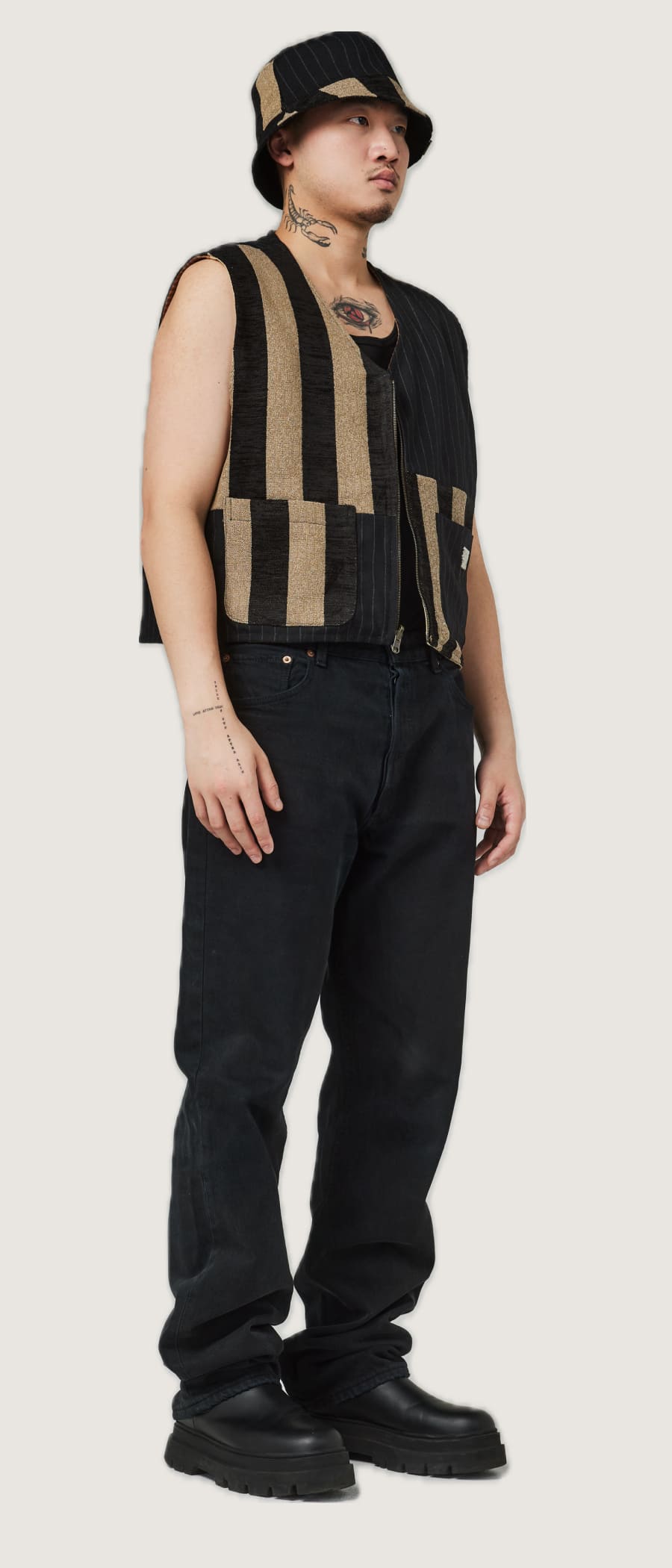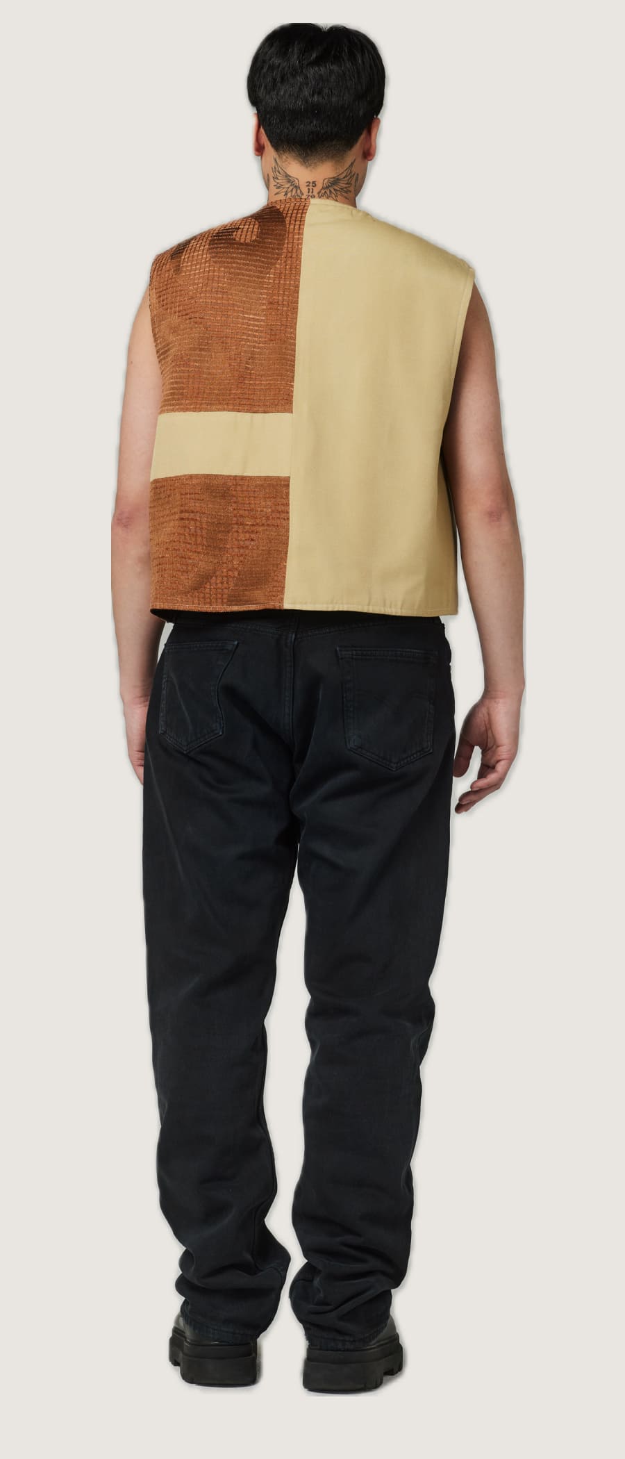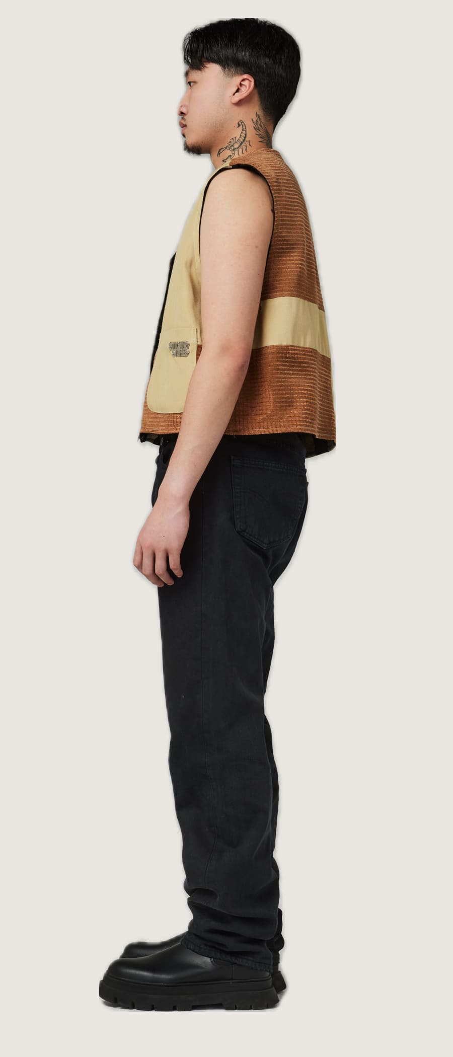 The length of the vest is 55 cm, measured from the back neckline to the hem. The vest has a straight fit. The vest features two patch pockets Finished with zilver Stitching Stories Logo on the pocket.