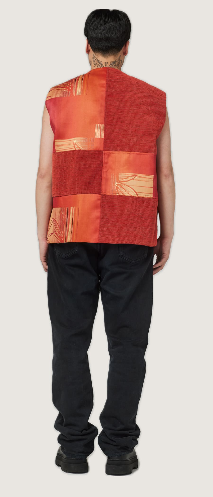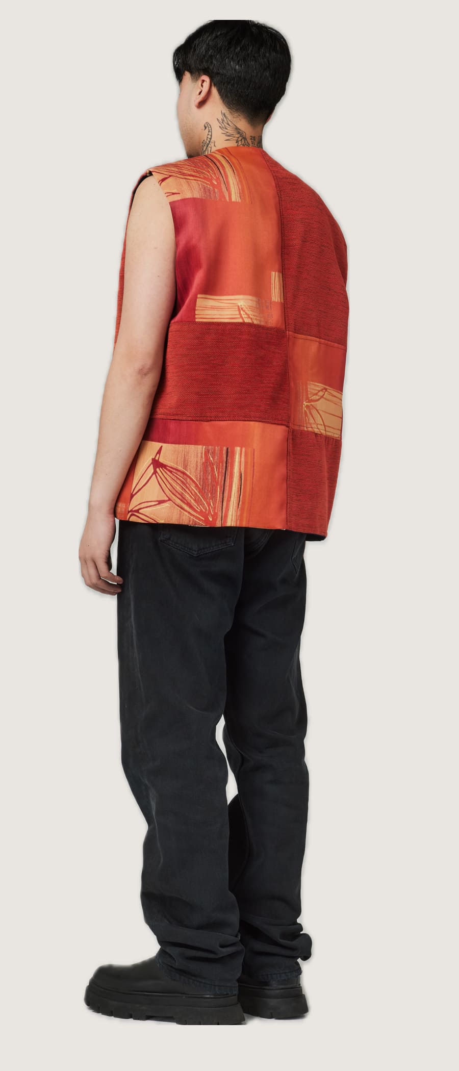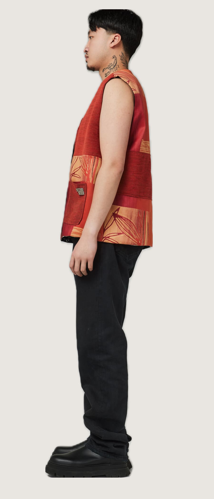 The vest has a oversized straight fit.