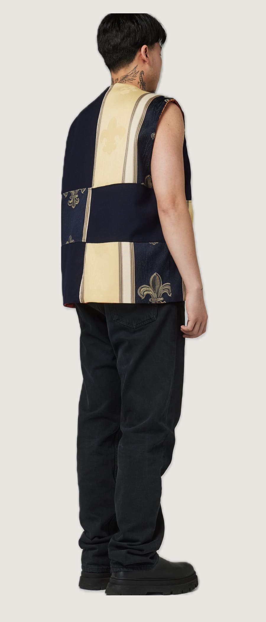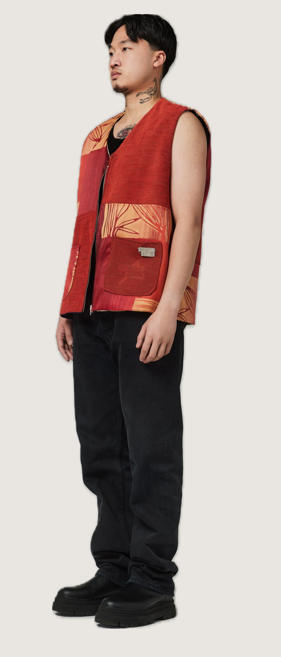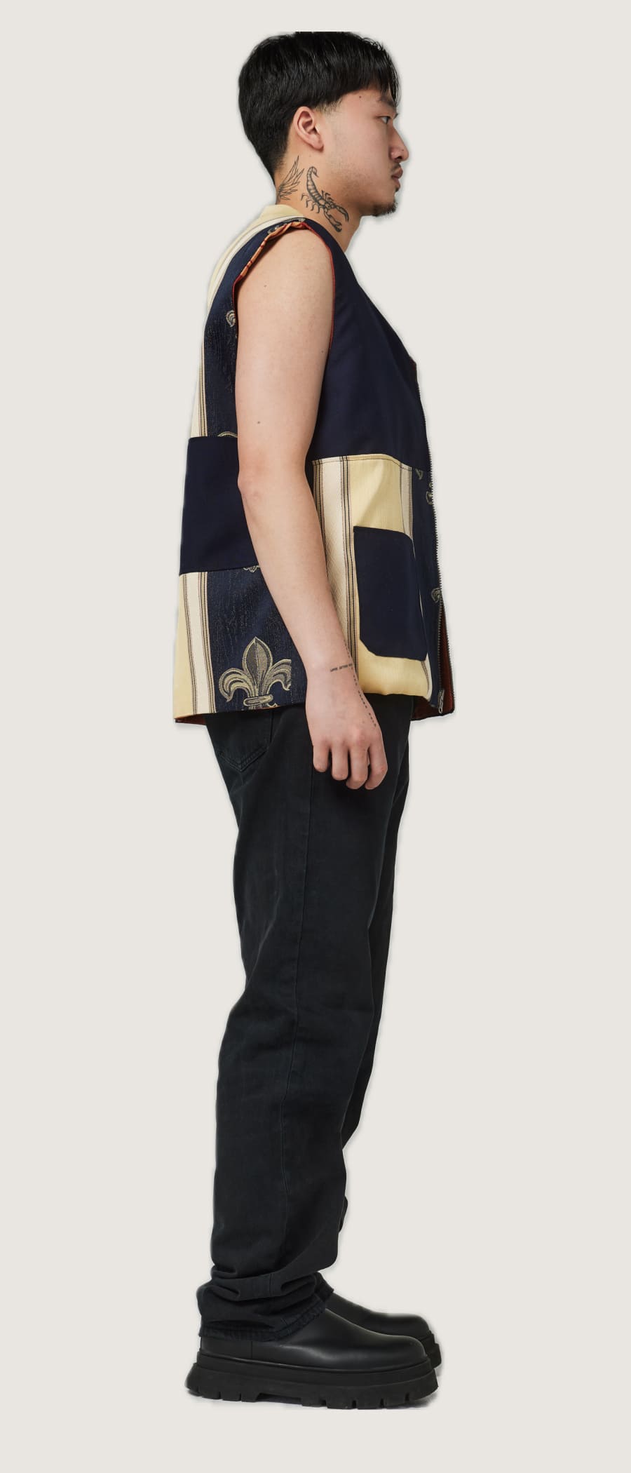 The vest has a oversized straight fit.